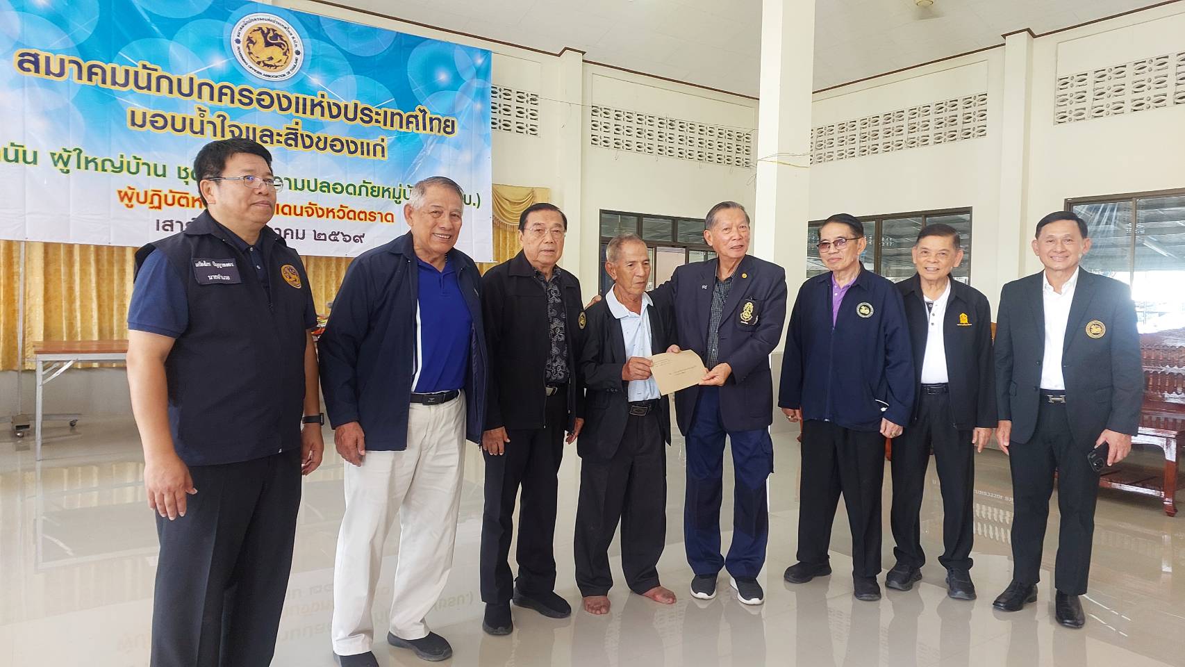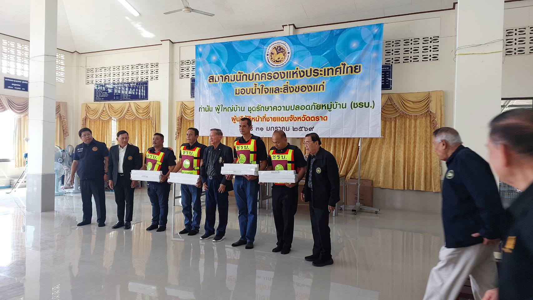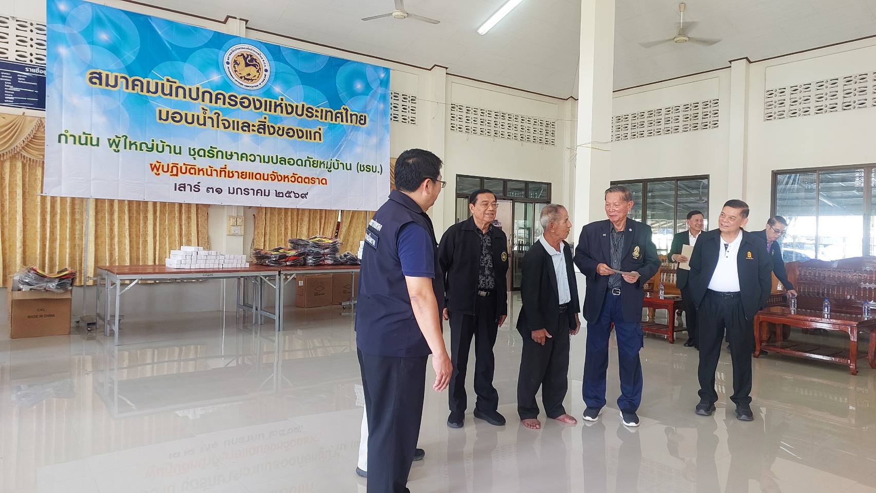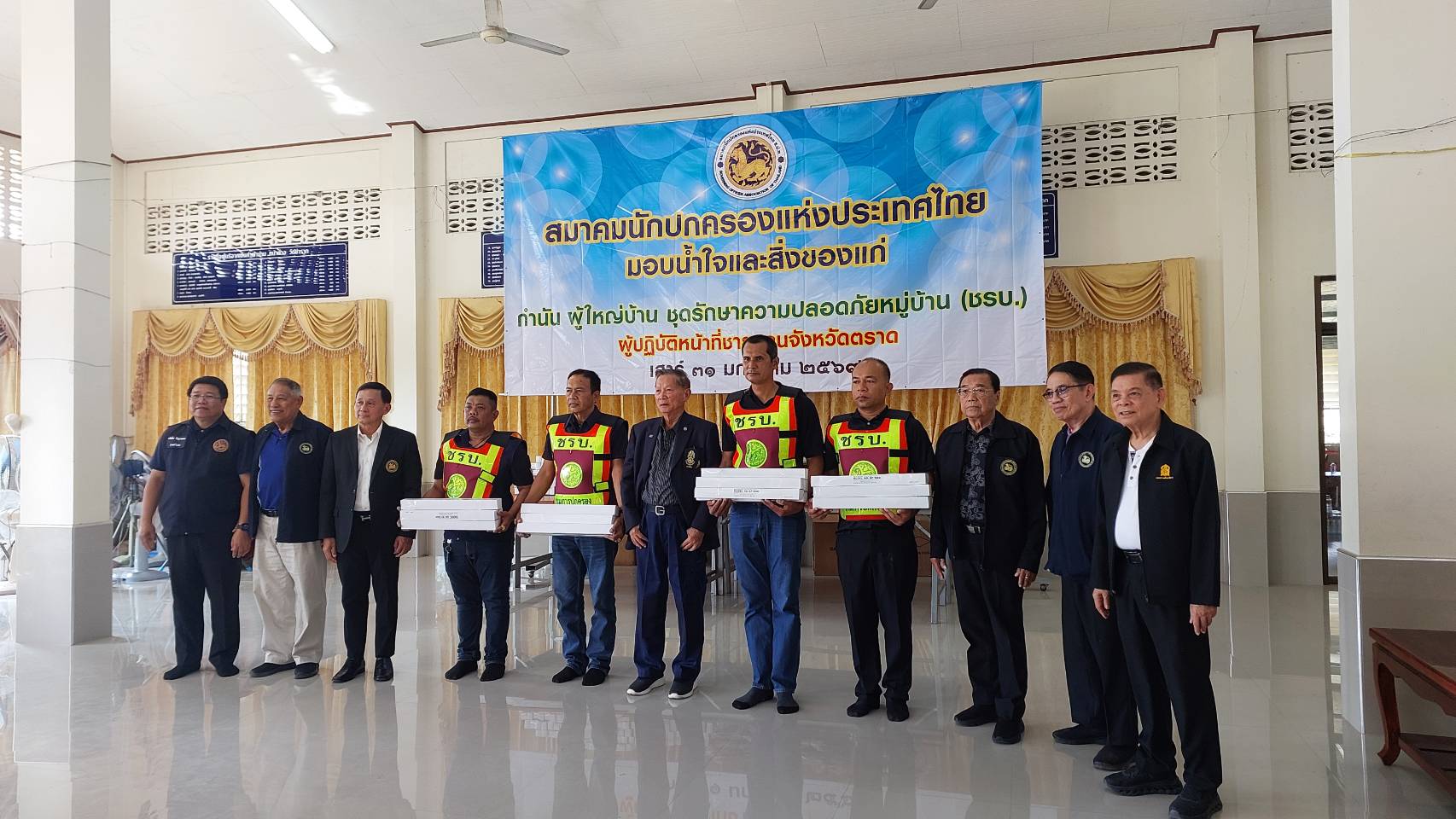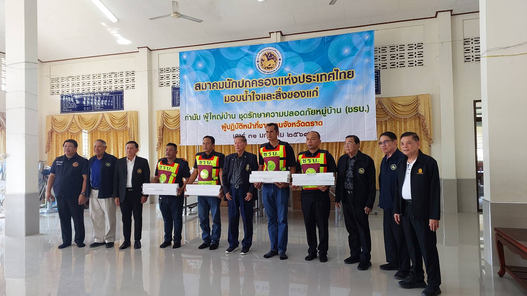วันที่ 31 มกราคม พ.ศ. 2569 นายสุจริต ปัจฉิมนันท์ นายกสมาคมนักปกครองแห่งประเทศไทย มอบหมายให้นายจเด็จ อินสว่าง อุปนายกสมาคมนักปกครองแห่งประเทศไทย พร้อมคณะทำงานสมาคมฯ เดินทางไปที่วัดชำราก ตำบลชำราก อำเภอเมืองตราด เพื่อเยี่ยมบำรุงขวัญ มอบกำลังใจและสิ่งของให้แก่ชุดรักษาความปลอดภัยหมู่บ้าน (ชรบ.) กำนัน ผู้ใหญ่บ้าน จำนวน 415 คน ที่ปฏิบัติหน้าที่ในการดูแลรักษาความสงบเรียบร้อย และความปลอดภัย แก่พี่น้องประชาชน ตลอดจนการช่วยเหลือสนับสนุนเจ้าพนักงานฝ่ายปกครอง ตำรวจ ทหาร ในการพิทักษ์พื้นที่ส่วนหลัง และรักษาทรัพย์สินของประชาชนที่ต้องอพยพไปอาศัย ณ ศูนย์พักพิงชั่วคราว ในระหว่างที่มีการต่อสู้ตามแนวชายแดนด้านจังหวัดตราด